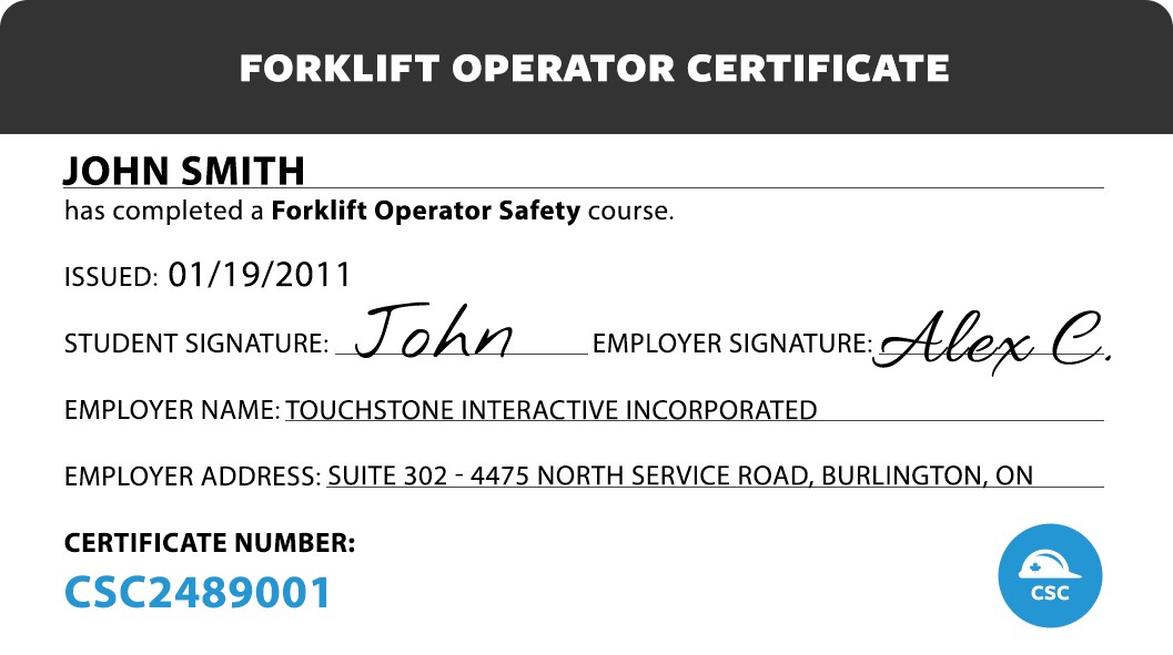 This course has been designed to meet and exceed Occupational Health and Safety Guidelines. By completing this course you can improve your knowledge of forklift safety in the workplace. By doing both theory and practical on-site training the employer is doing their “Due Diligence” in compliance with Occupational Health and Safety Regulations.