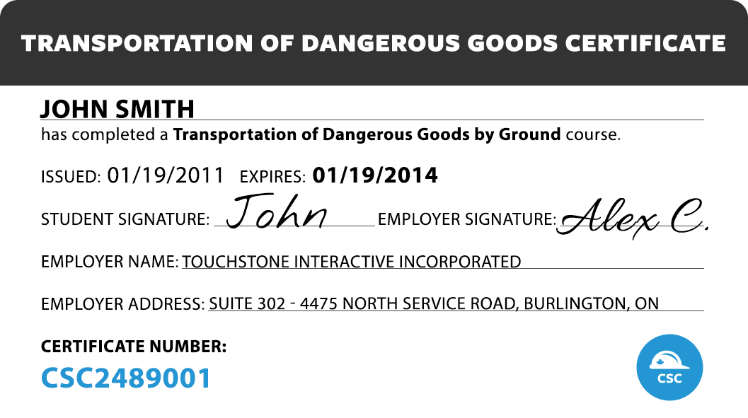 This Online TDG Certification Program has been developed in accordance with Transport Canada’s Dangerous Goods advisory note “Guidelines for Training Criteria for the handling, offering for transport and transporting dangerous goods by road” for the shipping, handling and transportation of dangerous goods by ground.